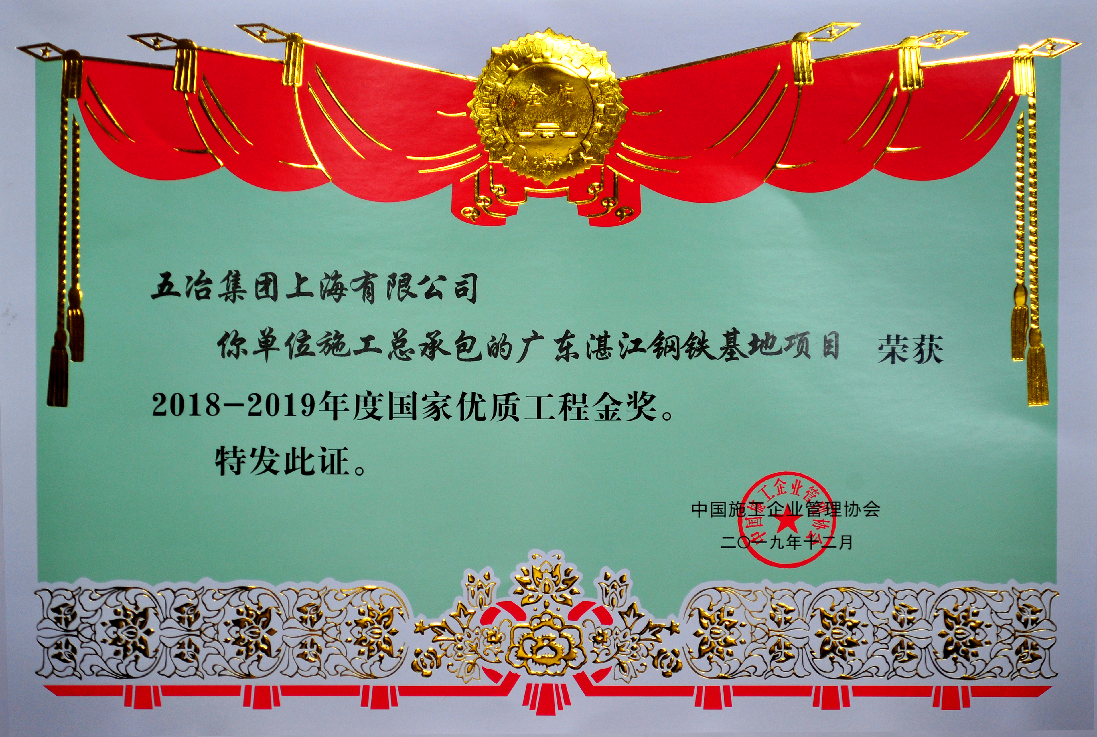廣東湛江鋼鐵基地項目——2019年度國家優質工程獎金獎