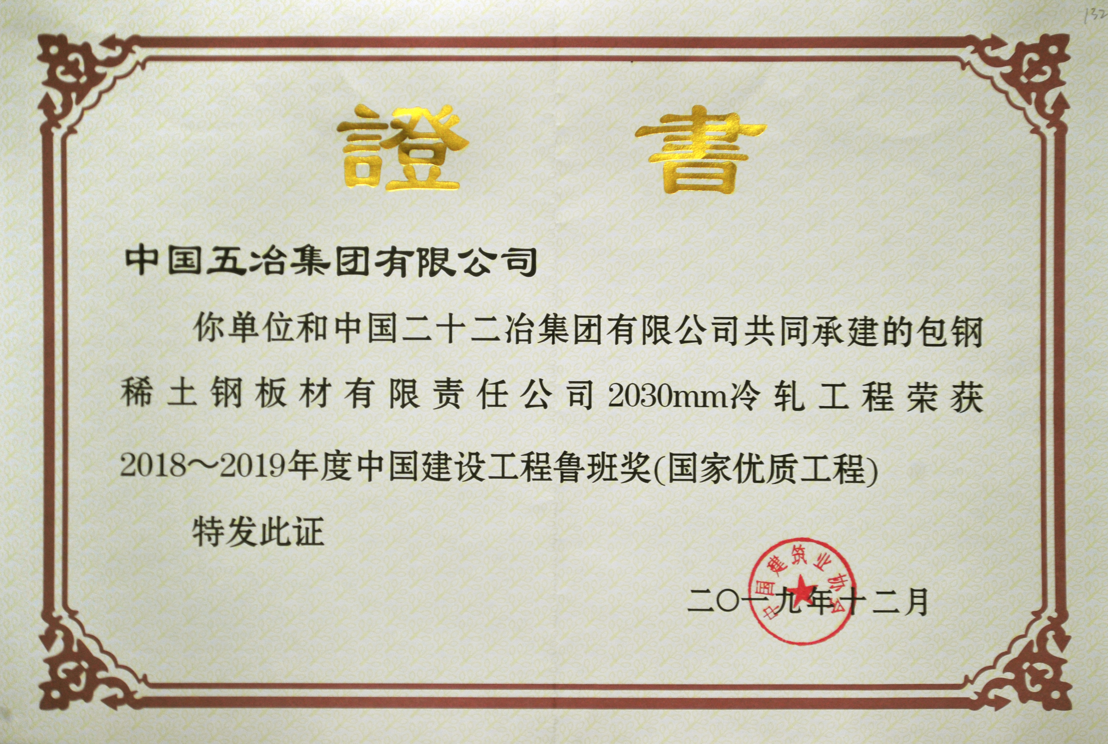 包鋼稀土鋼板材有限責任公司2030mm冷軋工程——2019年度魯班獎