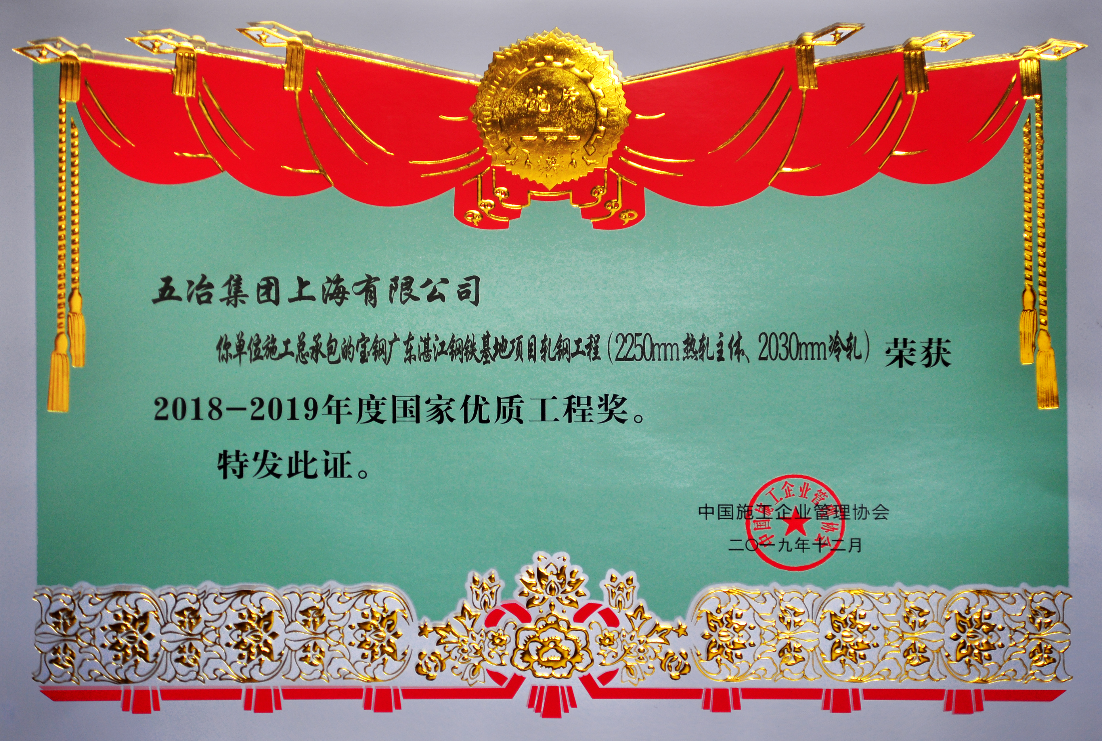 廣東湛江鋼鐵基地項目軋鋼工程(2250mm熱軋主體、2030mm冷軋)——2018年度國家優質工程