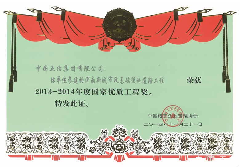 渾南新城市政基礎(chǔ)設(shè)施道路工程-2013-2014年度國(guó)家優(yōu)質(zhì)工程獎(jiǎng)