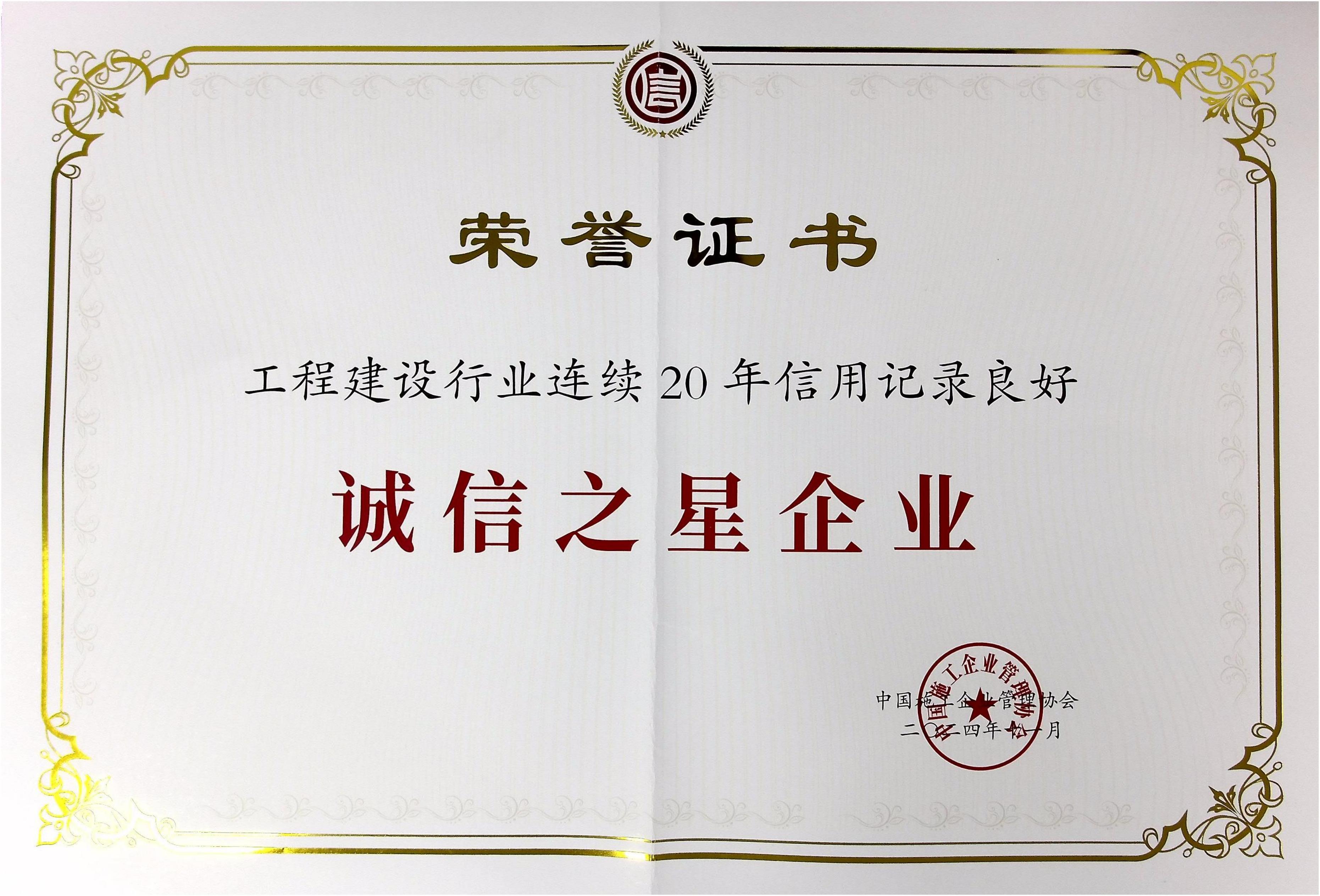 中國工程建設行業連續20年信用記錄良好誠信之星企業