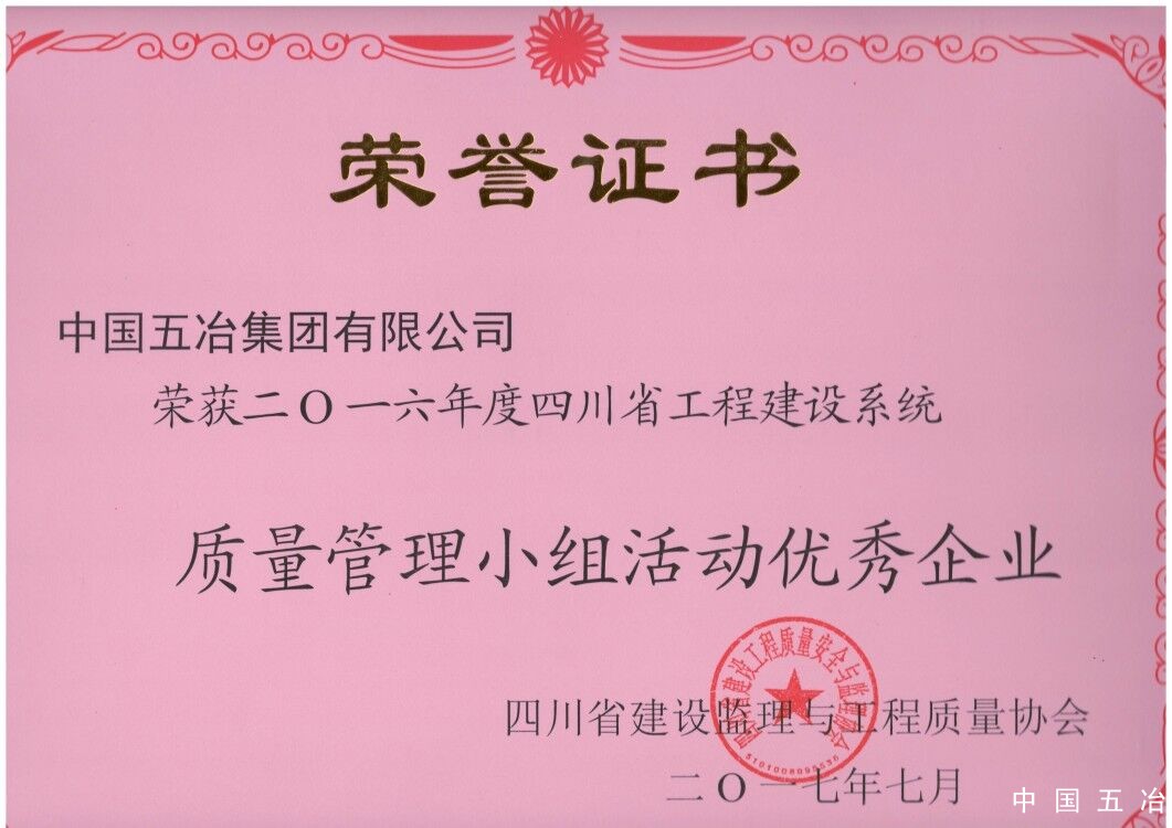 四川省工程建設系統質量管理小組活動優秀企業