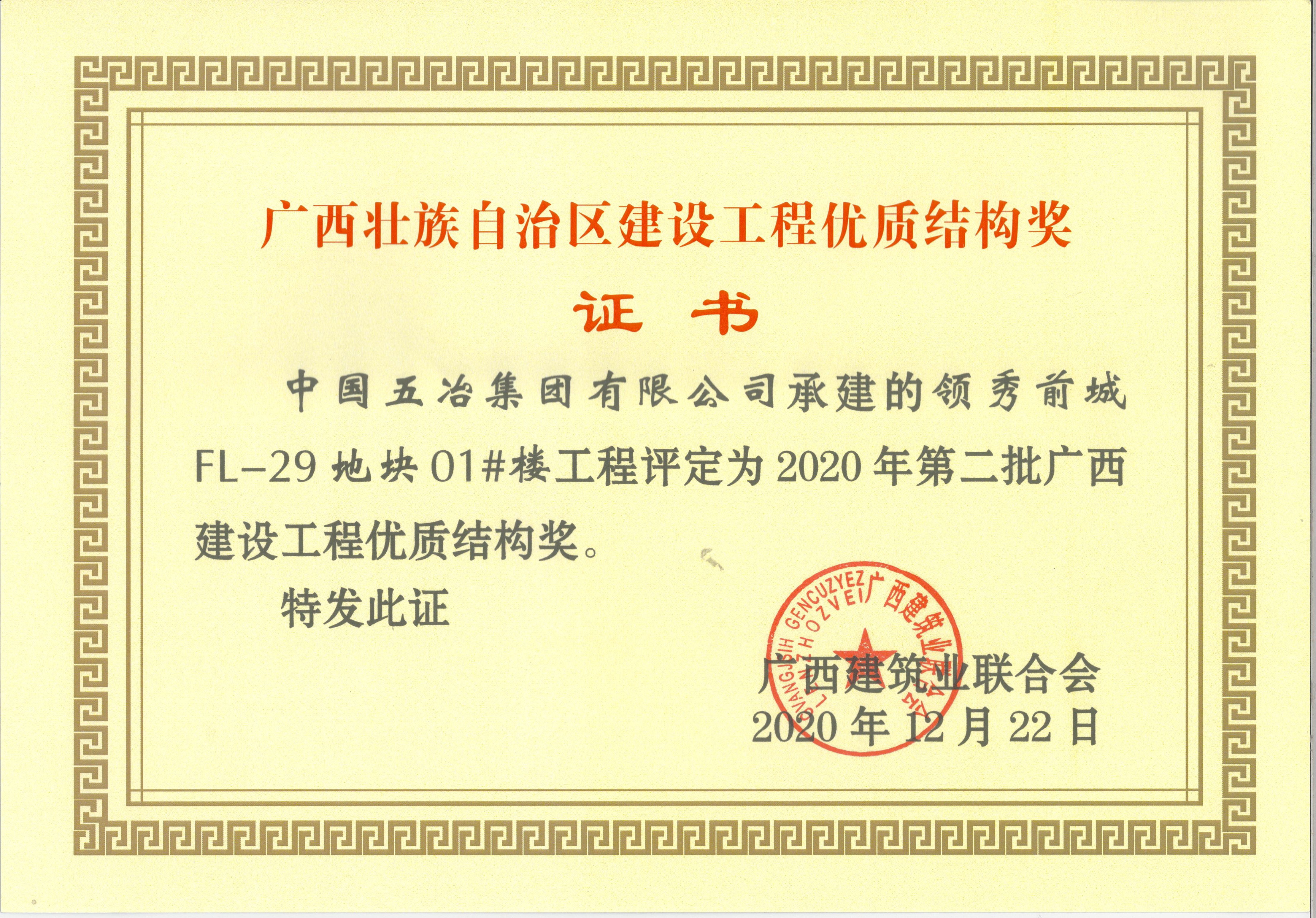領(lǐng)秀前城FL-29地塊08、09#樓及地下室工程—2020年第二批廣西建設(shè)工程優(yōu)質(zhì)結(jié)構(gòu)獎(jiǎng)