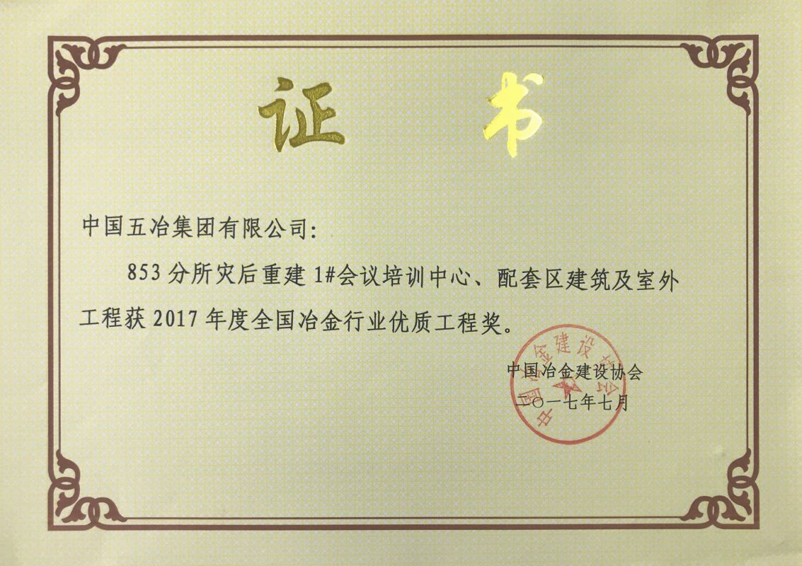 853分所災(zāi)后重建1#會(huì)議培訓(xùn)中心、配套區(qū)建筑及室外工程-2017年度全國(guó)冶金行業(yè)優(yōu)質(zhì)工程