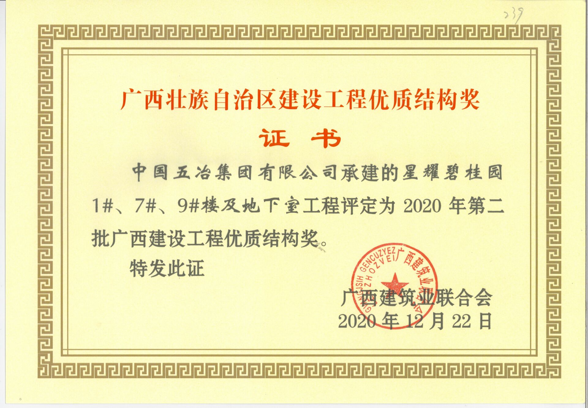 星耀碧桂園1#、7#、9#樓及地下室工程—2020年第二批廣西建設(shè)工程優(yōu)質(zhì)結(jié)構(gòu)獎(jiǎng)
