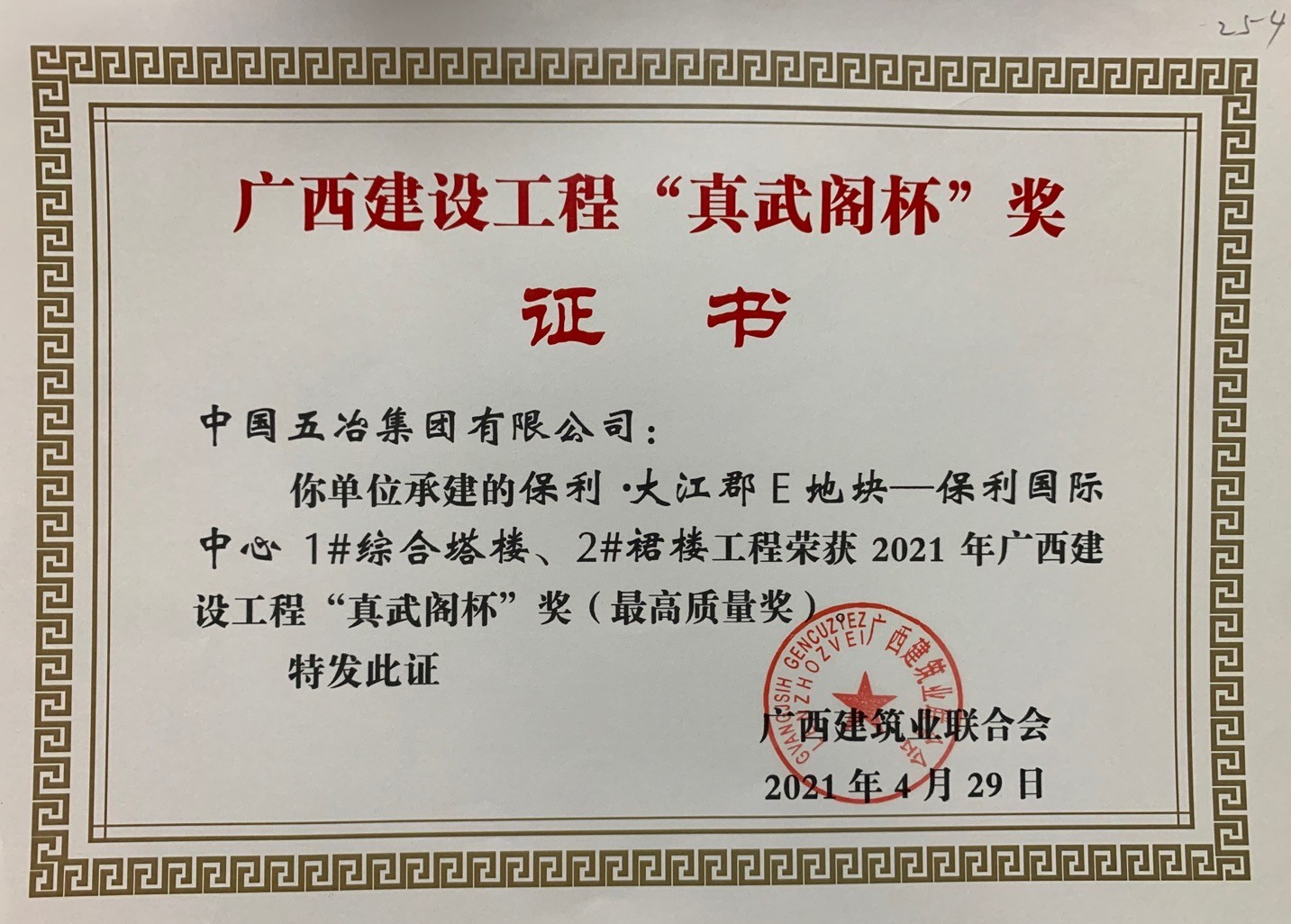 保利.大江郡E地塊-保利國際中心1#綜合塔樓、2#裙樓工程—2021年廣西建設真武閣杯獎