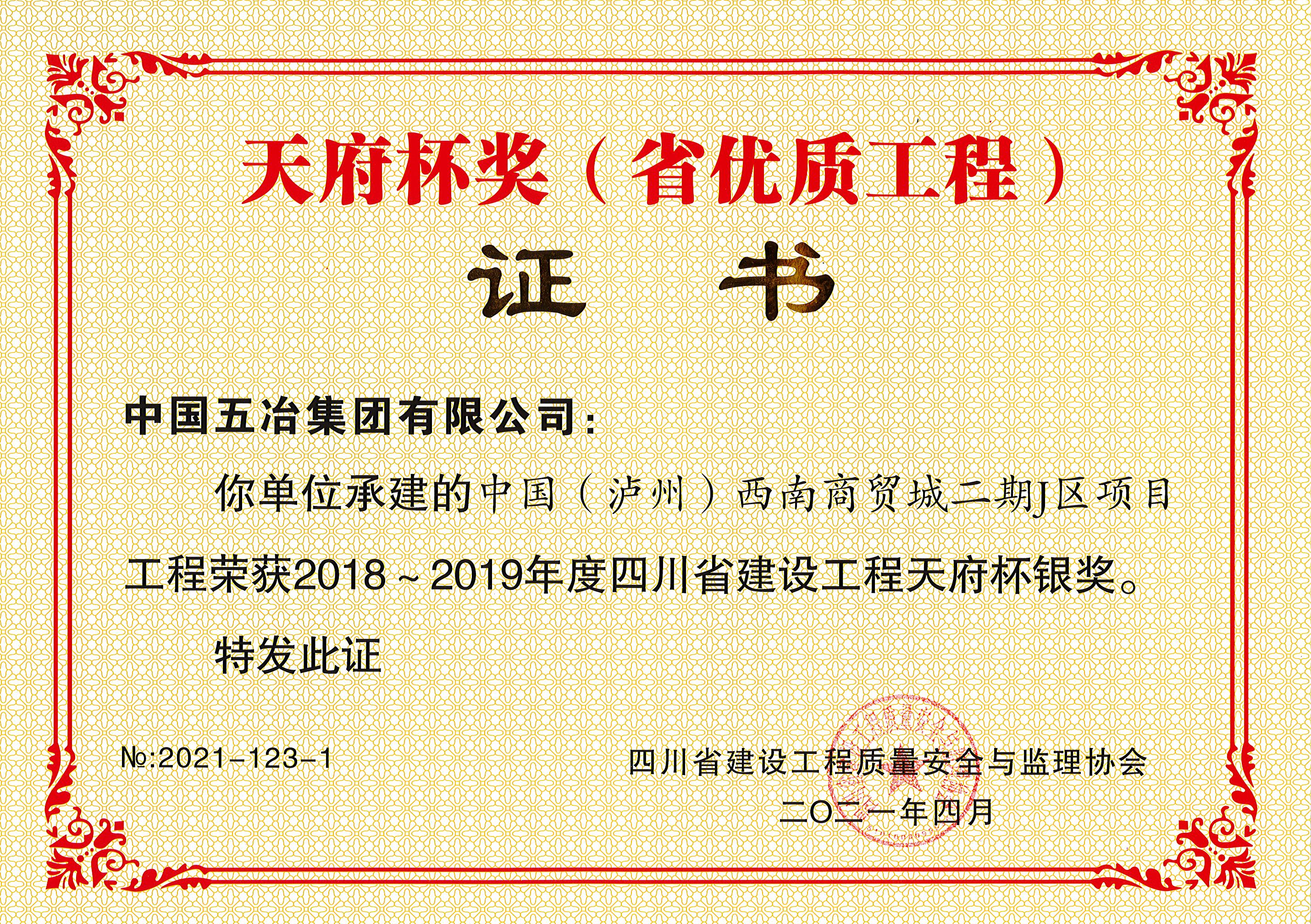 中國(瀘州)西南商貿城二期J區項目—2018-2019年度四川省建設工程天府杯銀獎