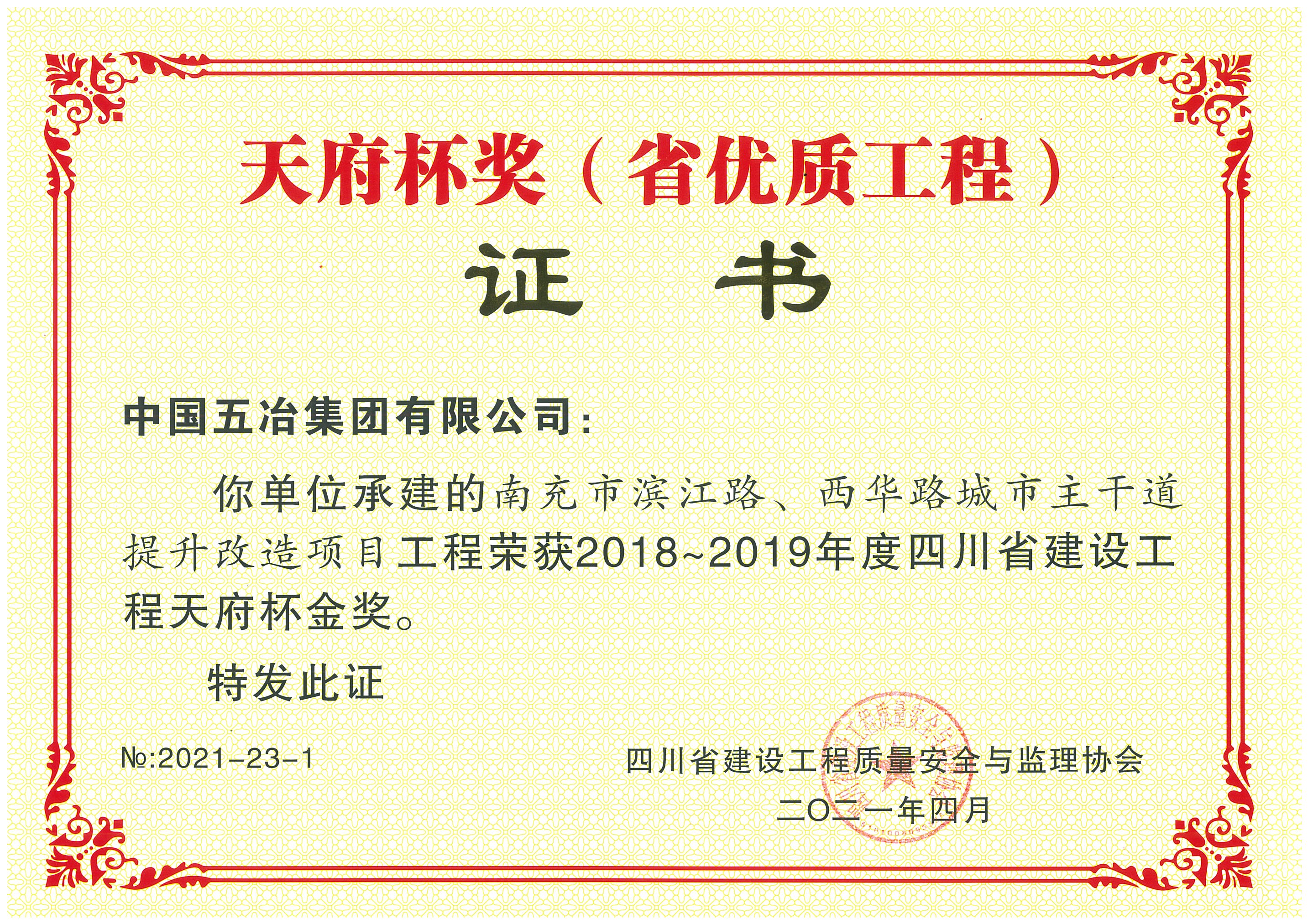 南充市濱江路、西華路城市主干道提升改造項目-2018-2019年度四川省天府杯金獎