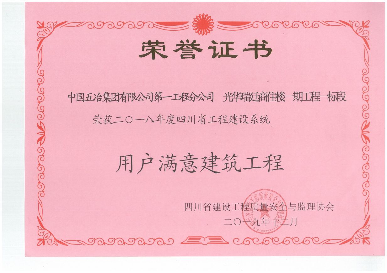 光華瑞廷商住樓一期工程一標段項目--2018年度四川省用戶滿意建筑工程證書