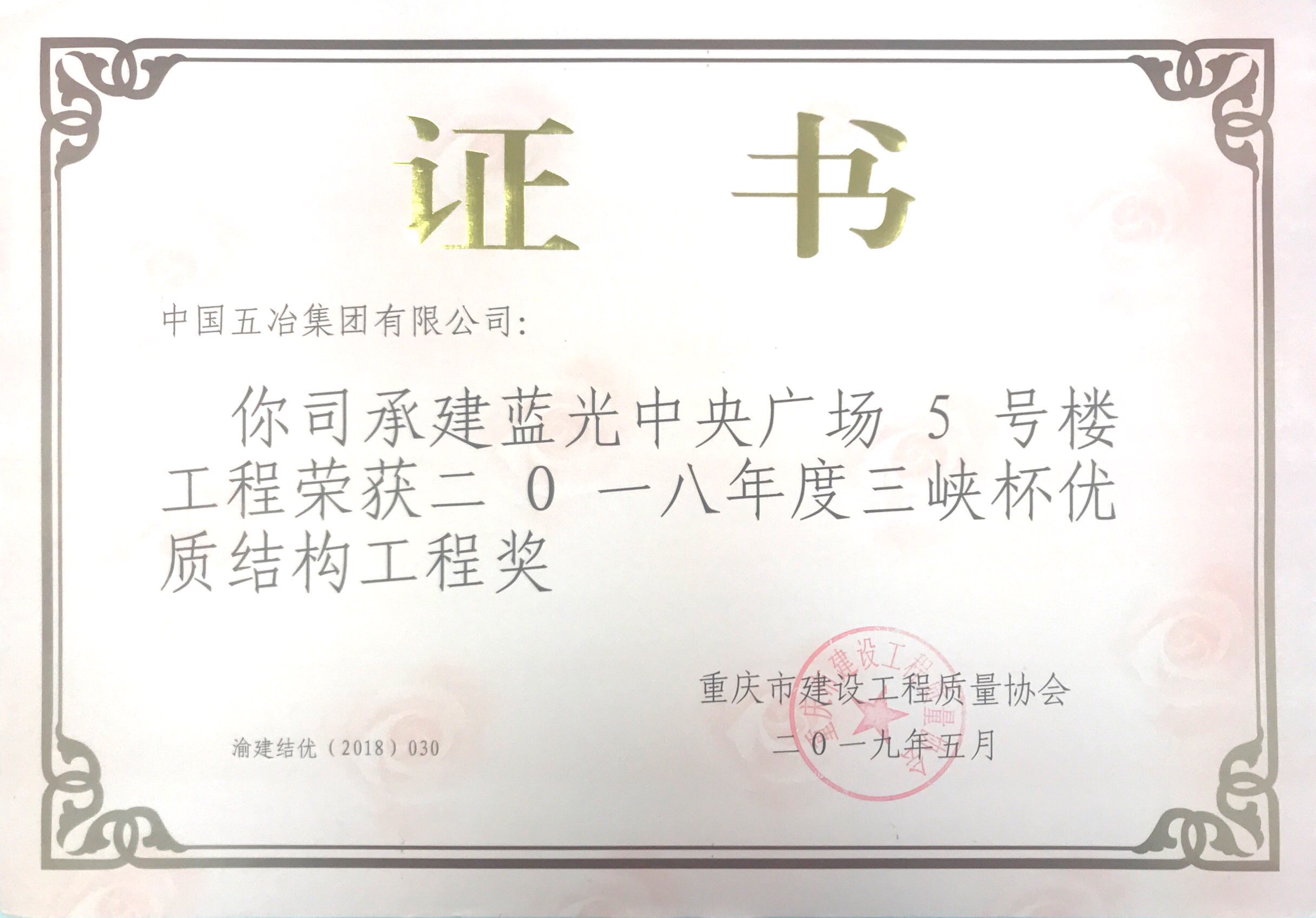 藍光中央廣場5號樓-2018年度重慶市三峽杯