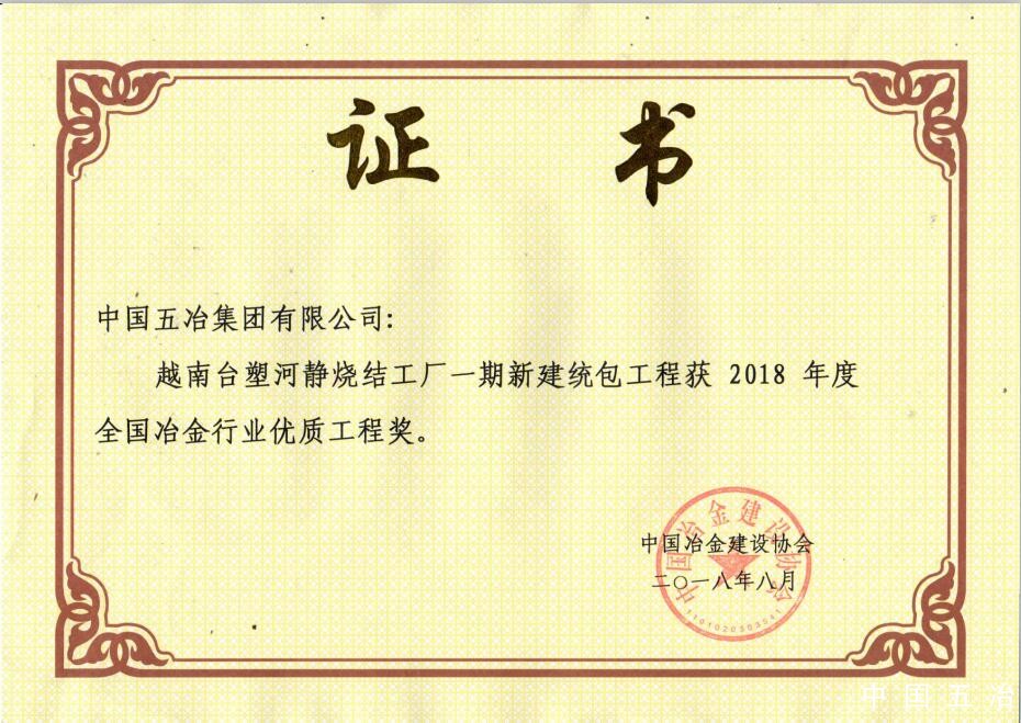 越南臺塑河靜燒結(jié)工場一期新建統(tǒng)包工程