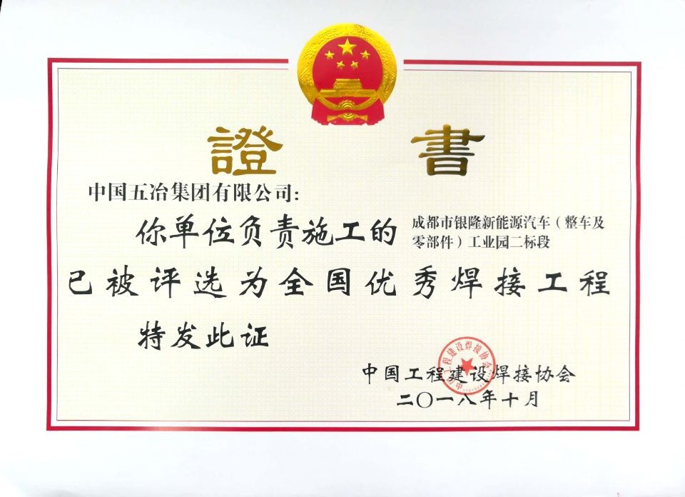 成都市銀隆新能源汽車(整車及零部件)工業園二標段-2018年度全國優秀焊接工程