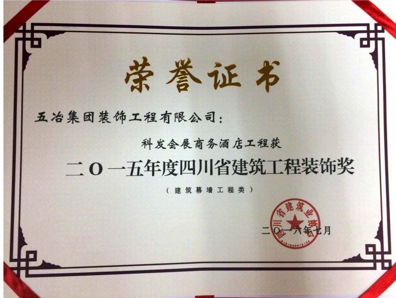 科發會展商務酒店工程-2015年四川省建筑工程裝飾獎(裝飾類)