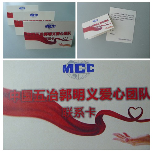 ????? 在全國廣泛深入持久地開展學(xué)雷鋒活動之際,公司團(tuán)委不僅制定了志愿服務(wù)年度工作計劃,還號召公司青年向新時期雷鋒精神的傳承者郭明義同志學(xué)習(xí),并組建了一支由百余名青年組成的“郭明義愛心團(tuán)隊”,圍繞公司生產(chǎn)經(jīng)營廣泛開展“崗位學(xué)雷鋒、爭做好員工”活動。為使活動落到實處,起到實效,公司團(tuán)委設(shè)計制作了“中國五冶郭明義愛心團(tuán)隊聯(lián)系卡”,做為愛心傳遞的有效載體發(fā)放到職工手中。