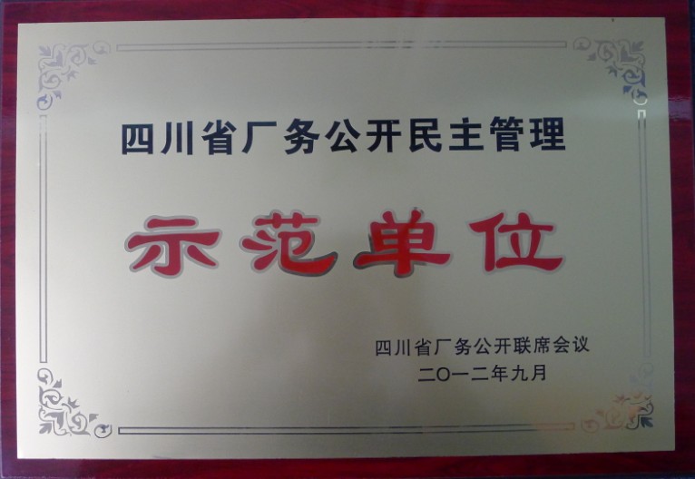 2012年9月,中國五冶集團在四川省創建廠務公開民主管理示范單位活動中,榮獲四川省“廠務公開民主管理”示范單位稱號。