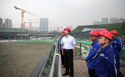 朱永繁董事長一行先后來到公司九花新型社區和天府藝術公園建設現場,聽取了項目策劃、工期進度、技術創新、創優創獎、形象展示、安全環保管理等方面的情況匯報,詳細查看了項目主體建筑及裝飾裝修品質細節,并代表集團公司對廣大員工辛勤勞動,敬業奉獻,端午節期間堅守奮戰在一線表示感謝和問候。