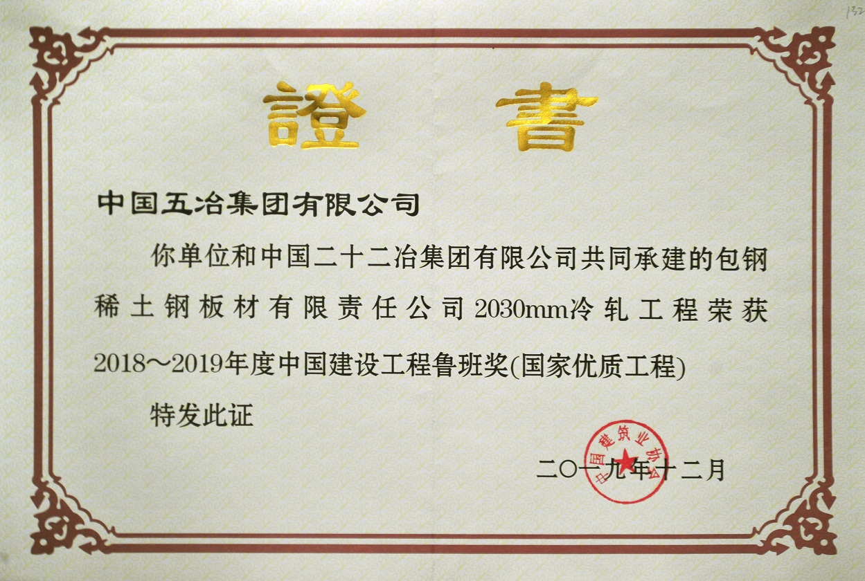 包鋼稀土鋼板材有限責任公司2030mm冷軋工程——2018~2019年度魯班獎