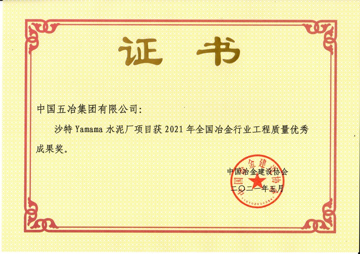 沙特Yamama水泥廠項目——2021年冶金優質工程