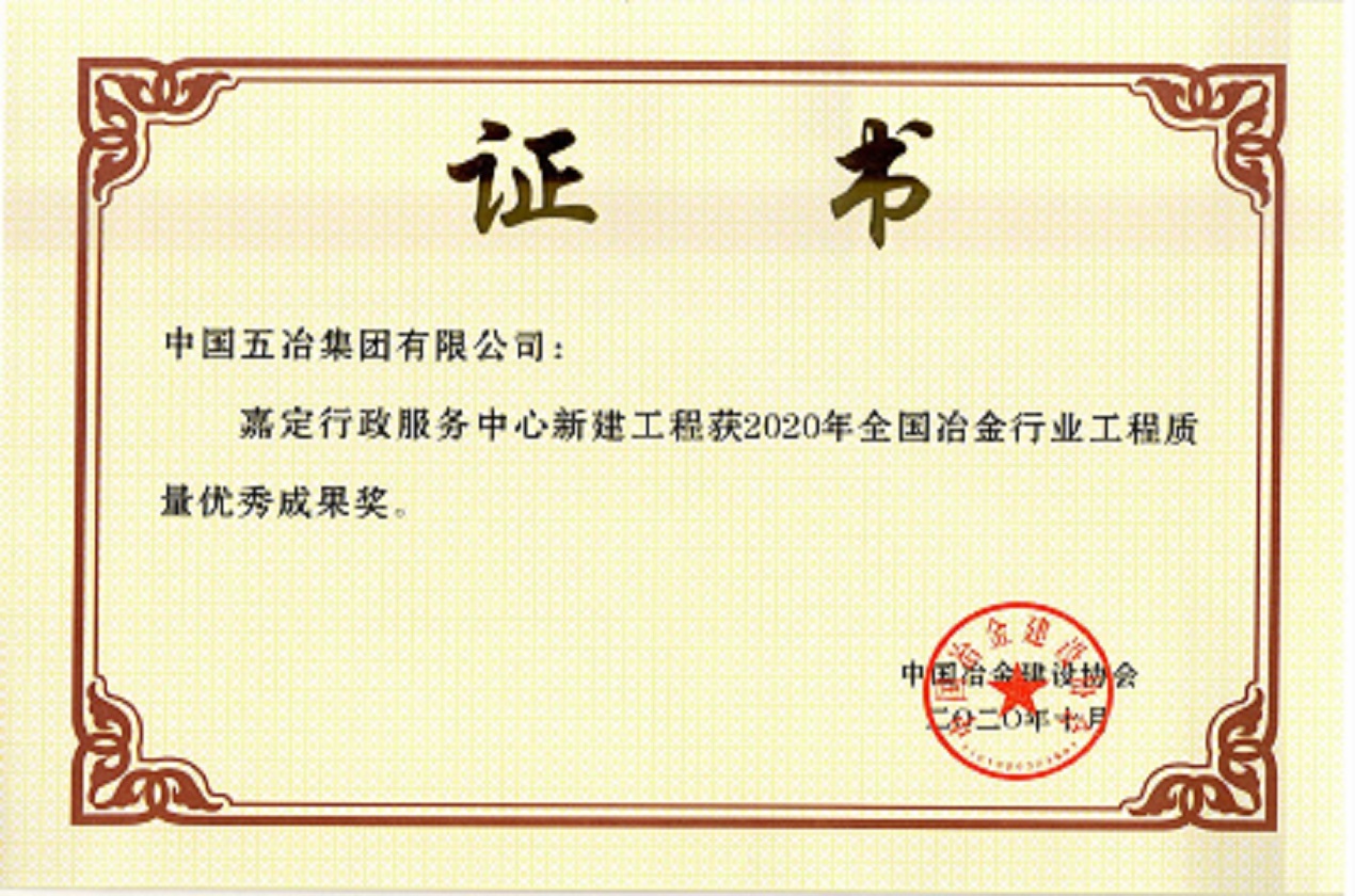 嘉定服務中心項目——2020年全國冶金行業工程質量優秀成果獎