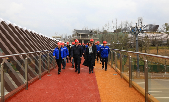 蓬安縣體育中心項目是蓬安建設錦屏文旅融合發展區的重要組成部分,同時也是備受市民關注的重要民生工程。朱永繁董事長與南充市副市長、蓬安縣委書記崔竹君一行來到這里,實地察看項目現場,檢查督導安全環保、疫情防控、工程質量等工作,雙方就項目施工方案、履約進度等有關情況進行了深入溝通交流。