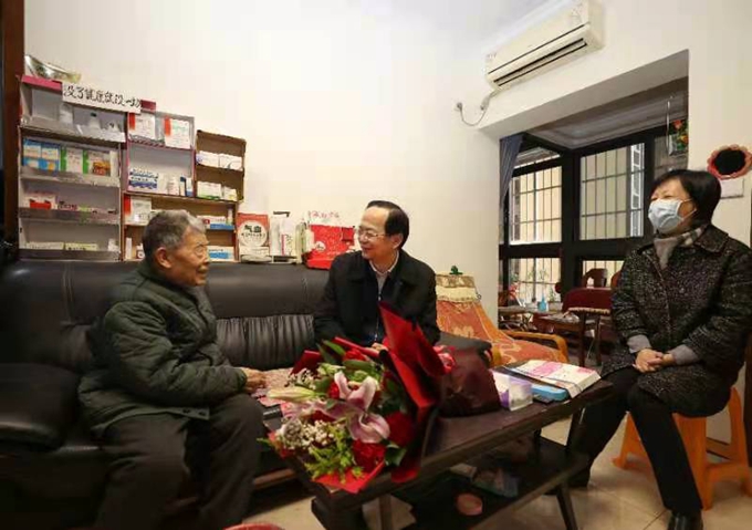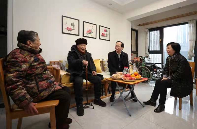 1月29日,中國五冶集團黨委書記、董事長朱永繁,黨委副書記、工會主席周悅靜一行先后看望慰問了96歲高齡的建國前老黨員、離退休干部陳國昇和王法有兩位老人,向他們致以新春問候,祝愿他們節日愉快、健康長壽。