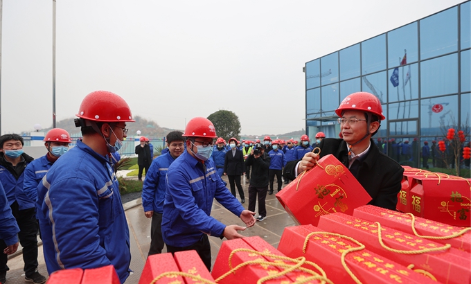 在隨后召開的座談會上,朱永繁董事長代表集團(tuán)公司黨委會、董事會、經(jīng)營層向節(jié)日期間堅守崗位、辛勤工作的全體員工、合作伙伴及各位工友表示誠摯的慰問,并向大家拜年,祝大家新年快樂,吉祥如意,幸福安康。