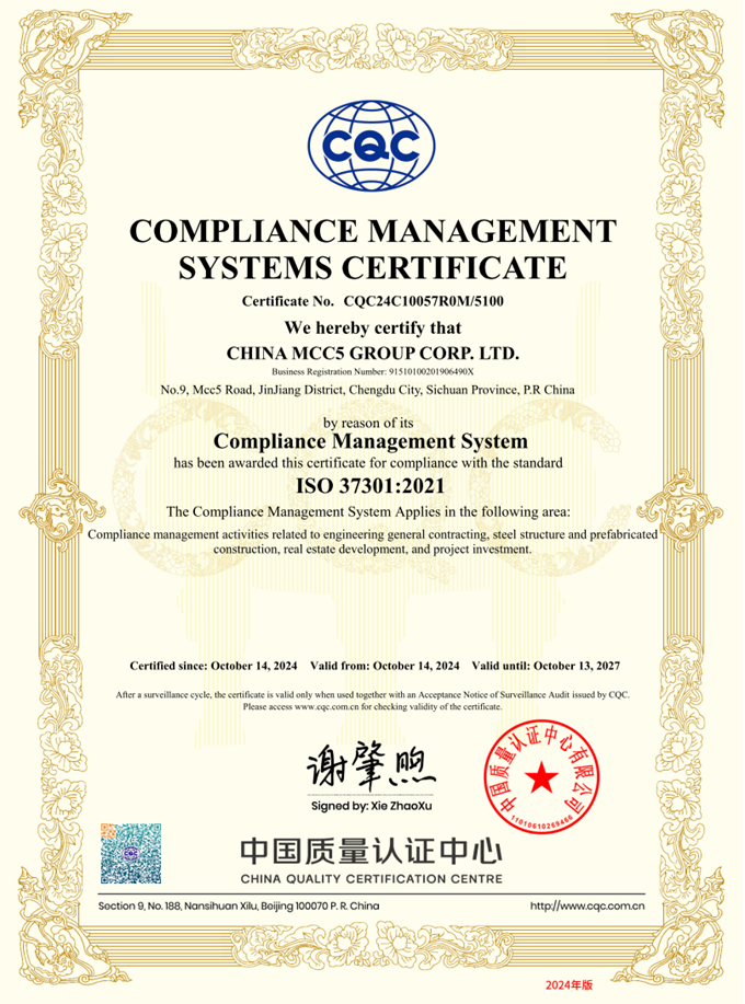 近日,中國五冶集團獲得由中國質量認證中心頒發的GB/T 35770-2022/ISO 37301:2021合規管理體系認證證書,標志著公司合規管理水平全面達到國內、國際標準要求,合規管理體系建設邁上新臺階。
