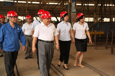 在車間,程并強詳細詢問了鋼構件的生產加工情況,對不畏高溫、堅持在一線辛勤工作的員工表示感謝和慰問。要求各級領導切實做好車間作業過程中的防暑降溫工作,叮囑一線員工要保重身體,在干好工作的同時,防止高溫中暑,確保生產順利推進。