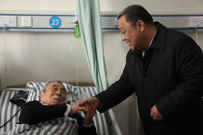 在92歲高齡離休老干部邵佐病床前,程并強關切地對邵老說,“公司時刻惦記著你們,希望您老健康長壽”!他詳細了解了邵老的身體狀況,叮囑公司離退休管理部同志,要切實做好老同志的服務工作,關心他們的身體健康,解決他們的實際困難,把組織的溫暖及時送到他們身邊?!?/span>
