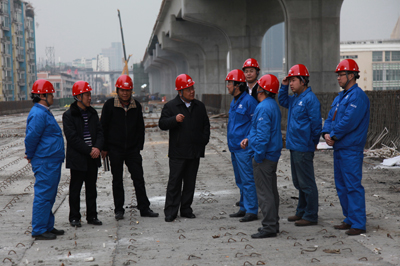領導們給項目部員工帶去了水果、豬肉等慰問品,詳細了解了成溫路射線改造工程的施工情況。在現場,領導們登上已經鋪好的高架路第三層,與正在施工的工人們親切交談,詢問了他們的工作和生活現狀。工人們愉快地表示工作順利,心情愉快,不然早就跑了,說得大家笑了起來。