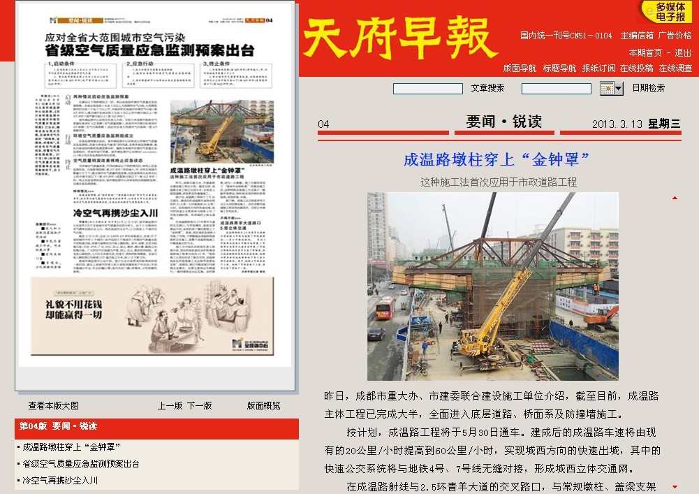 據了解,該施工法之前更多用于大江大河的搭設施工,而在成都市政道路工程采用尚屬首次,目前正申請施工專利技術。