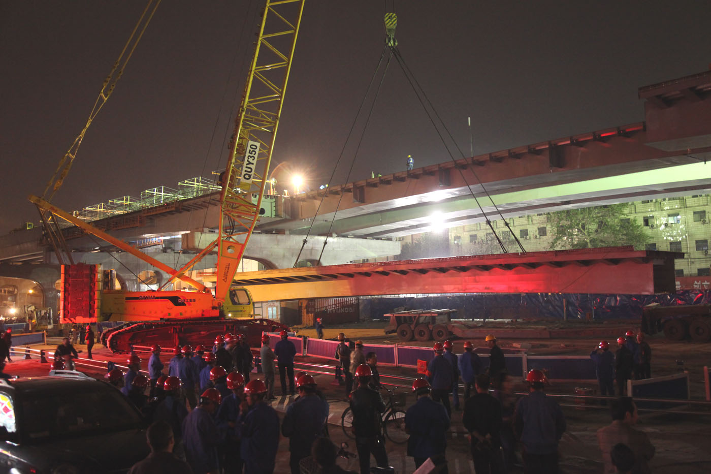 成溫路改造工程?hào)|起于二環(huán)路成溫立交橋,西止于三環(huán)路蘇坡立交橋東側(cè),全長2.5公里。建成后的成溫路車速將由現(xiàn)有的20公里/小時(shí)提高到60公里/小時(shí),實(shí)現(xiàn)城西方向的快速出城,其中的快速公交系統(tǒng)將與地鐵四號(hào)、七號(hào)線無縫對(duì)接,形成城西立體交通網(wǎng)。項(xiàng)目自2012年11月23日首吊小箱梁以來,經(jīng)過項(xiàng)目部全體員工123天全力以赴地辛勤勞動(dòng),順利完成了全部650片小箱梁及16000㎡鋼箱梁的吊裝,提前5天實(shí)現(xiàn)業(yè)主要求的節(jié)點(diǎn)目標(biāo)。
