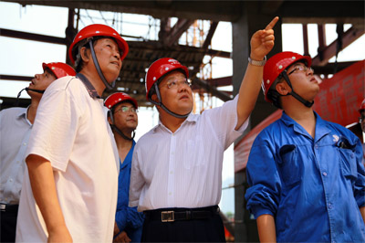 下午三時(shí)許,室外溫度超過35°,在成都大魔方項(xiàng)目部,程并強(qiáng)一行和項(xiàng)目部一線員工親切交談,感謝他們冒著高溫不辭辛苦地工作。在觀看大魔方項(xiàng)目動(dòng)畫演示介紹后,程并強(qiáng)來到演藝中心施工現(xiàn)場,仔細(xì)了解工程進(jìn)度情況和存在的難點(diǎn)問題,他要求項(xiàng)目部嚴(yán)格按照公司管理做好工作,相互協(xié)調(diào)溝通,做好總包的經(jīng)驗(yàn)總結(jié)。