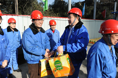 在寶鋼煉鐵項目、寶鋼一期焦爐施工現場,徐永鋒等公司領導向員工們轉達了新春祝福,了解了項目施工的進展情況,叮囑大家千萬注意安全,消除各類隱患,過一個平安祥和的春節。(彭堯?文/圖)