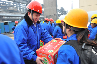 在寶鋼一期焦爐大修改造工程現場,徐永鋒一行慰問了現場的17支分包隊伍、3個自有班組計700余名作業人員,30余名管理人員。并與寶鋼工程分公司管理人員進行了簡短座談交流,徐永鋒在表示感謝和慰問的同時,希望大家按照寶鋼要求在保證現場安全、工程質量的前提下,全力確保4.30投產目標。同時,徐永鋒要求寶鋼工程分公司要守住大寶鋼市場,專心當好公司冶金行業的“臺柱子”。