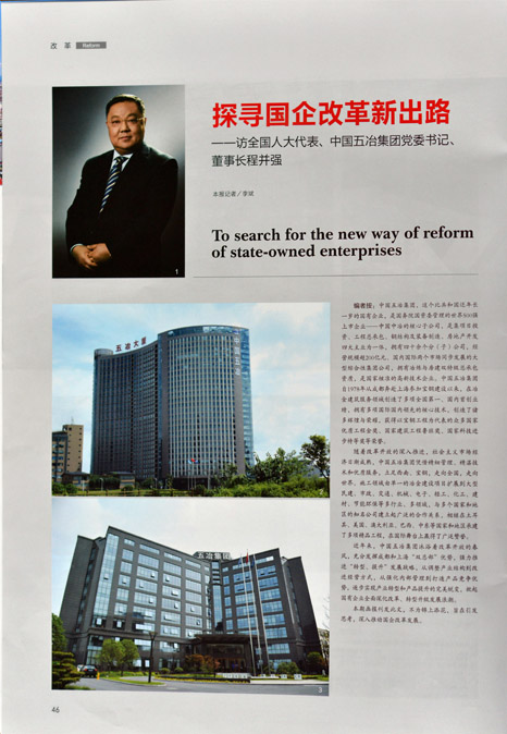 文章通過對全國人大代表,中國五冶集團董事長、黨委書記程并強進行專訪,圖文并茂,全面展現了中國五冶集團的綜合實力、改革發展歷程、創新成果等。文章指出:近年來,中國五冶集團沐浴著改革開放的春風,充分發揮成都和上海“雙總部”優勢,強力推進“轉型、提升”發展戰略,從調整產業結構到改進經營方式,從強化內部管理到打造產品競爭優勢,逐步實現了產業轉型和產品提升的完美蛻變,掀起了國有企業全面深化改革、轉型升級的發展浪潮。