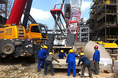 湛江鋼鐵基地項目的同事們正在吊裝設備