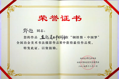 在中冶集團(tuán)承辦的“鋼鐵情?中國夢”為主題的2014年全國冶金美術(shù)作品展活動中,我公司員工董玉竹、蘭娜、鄧超的3幅作品獲得最佳作品獎,6幅作品獲得優(yōu)秀作品獎。據(jù)了解,此次共有來自全國冶金系統(tǒng)的近500幅作品參加了展出,集團(tuán)文化中心精心組織,挑選了一批優(yōu)秀作品參加展覽,這些美術(shù)攝影作品從藝術(shù)角度反映了“中國夢”與“美好中冶”的緊密關(guān)系,表現(xiàn)出了五冶人?“一天也不耽誤,一天也不懈怠”的奮斗精神,受到組委會的一致好評。(鄧超)?