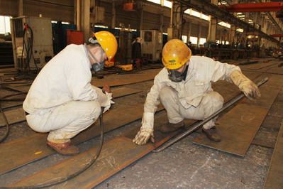 鋼構生產車間工人們正在作業