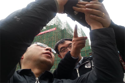 在項目現(xiàn)場實(shí)戰(zhàn)拍攝中,集團(tuán)攝影師鄧超針對項目特點(diǎn)及各節(jié)點(diǎn)情況的分析,帶領(lǐng)大家就拍攝工程項目各大場面如何選位置及選時間,項目各重大節(jié)點(diǎn)期間如何找主題、尋主體、挑角度、等時機(jī)等逐一進(jìn)行了實(shí)地踩點(diǎn)試拍,針對現(xiàn)場畫面的合理布局及構(gòu)圖、利用適合的光線、施工人員的情態(tài)動作捕捉這三大要素結(jié)合自己的經(jīng)驗?zāi)托姆治龊徒涣?在帶領(lǐng)大家進(jìn)行的工地攝影創(chuàng)作中,大到攝影意識,小到握機(jī)方式都一一進(jìn)行了講解。