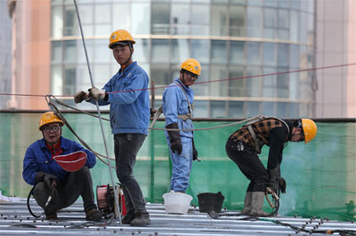 成都新華之星項目正在屋面作業的工作人員