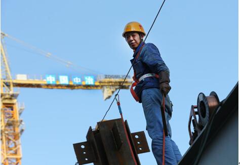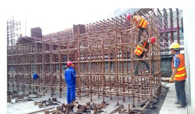 新華之星B區核心筒正在現場檢查鋼筋焊接的工作人員