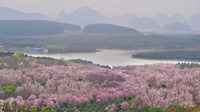 開園當天,園區吸引了無數旅客和媒體記者前來觀賞旅游和采訪報道。在現場,嫣紅粉白的櫻花與紅楓湖湖畔相映成景;園內布依族、苗族等少數民族與游客歡快的笑聲洋溢著和諧的氣氛。在怒放的櫻花樹林之中,在來來往往的游客之中,時而能看到身著藍色工作服的中國五冶建設者在忙碌或協助游客的身影。特別是清晨,山中彌漫著淡淡的霧氣,在粉色的樹林間緩緩運動;陽光透過半透明的粉白色櫻花瓣,閃灼的灑落在地上;花瓣乘著西風飄落,天空飄著粉色的雪。據了解,該櫻花主題公園是中國五冶以PPP模式打造貴安新區貴州玲瓏水鄉·櫻花風景區生態整治及環境保護項目的又一力作。該項目的櫻花種植面積達1.3萬畝、近70萬株,毗鄰紅楓湖湖畔,享有“櫻花王國、花香四海、養身福地”之美譽,被游客美譽為“中國櫻花海”。?