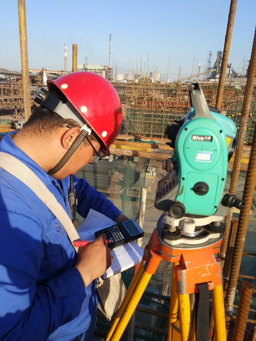 寶鋼工程公司 寶鋼一二燒結整合大修項目測量員進行現場螺栓定位復測