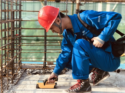 華北公司榮盛項目人員對樓板鋼筋間距保護層檢查