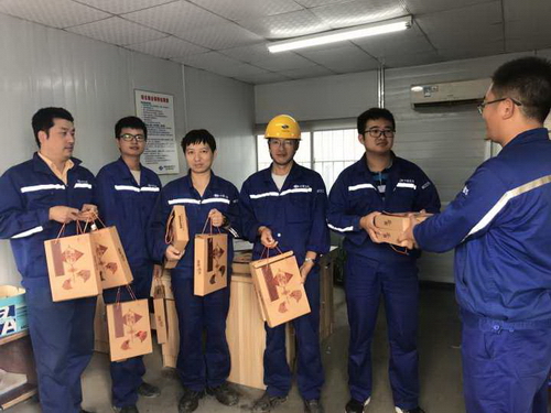 川滬兩地各二級公司為駐守一線的員工送去節日的問候和月餅、牛奶、水果等慰問品,讓大家感受到企業的關愛和溫暖。各項目部在工作之余組織起豐富多彩的娛樂活動,一線員工歡聚一堂,共慰思鄉之情。
