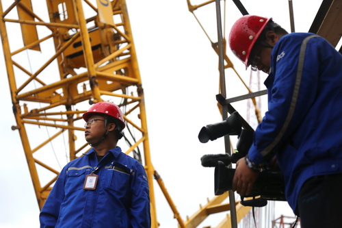 下雨不休息 近百噸鋼“龍骨”國慶日起吊