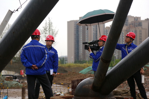 10月1日上午,成都市下起小雨。集團公司文化中心記者團一行走進成都露天音樂公園項目的建設(shè)現(xiàn)場。記者團在現(xiàn)場看到,盡管小雨一直淅淅瀝瀝,工地現(xiàn)場也比較泥濘,但各個作業(yè)面均在正常施工,到處都是一副熱火朝天的景象。