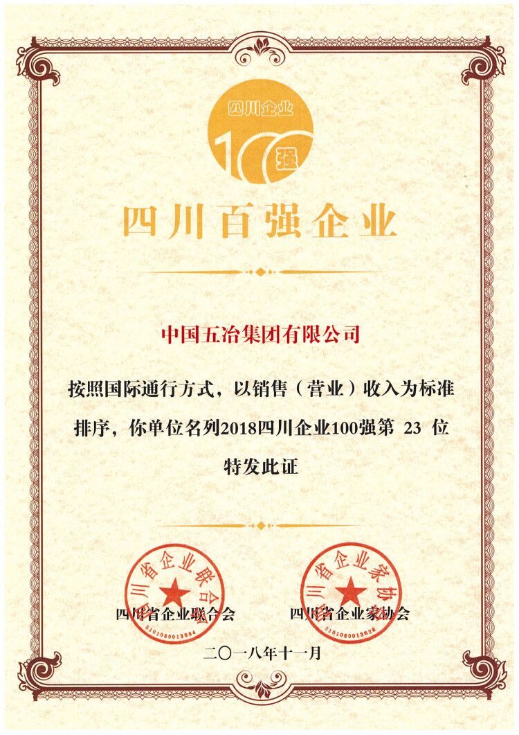 近日,2018年度四川省企業(yè)100強名單權(quán)威發(fā)布,中國五冶集團有限公司位居23位,較去年提升兩位。?