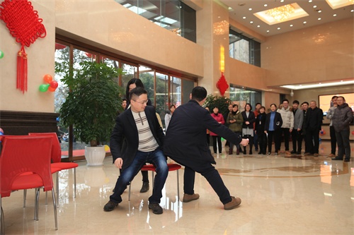此次迎新春活動以游戲?yàn)橹鳎顒蝇F(xiàn)場洋溢著喜慶的氣氛,熱鬧非凡,激動人心的“搶凳子”“三人四足”等互動游戲不斷引發(fā)陣陣笑聲,最后,活動在團(tuán)體拔河游戲的聲聲的吶喊和歡呼雀躍之聲中落下帷幕。